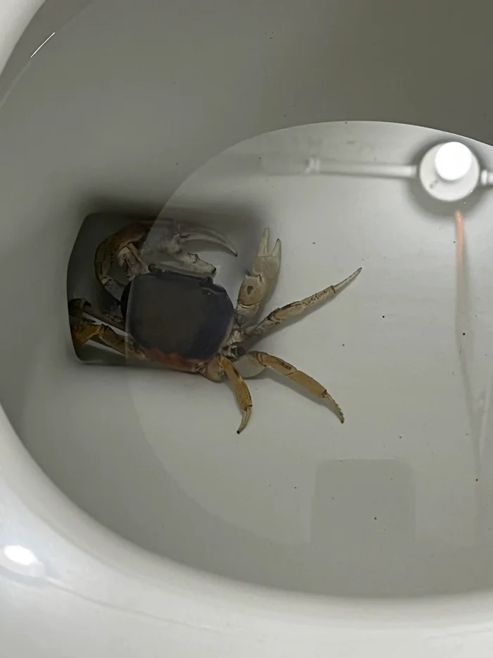 6. Сегодня утром мой папа проснулся и увидел в туалете «канализационного» краба. (Мы живём в тропиках)