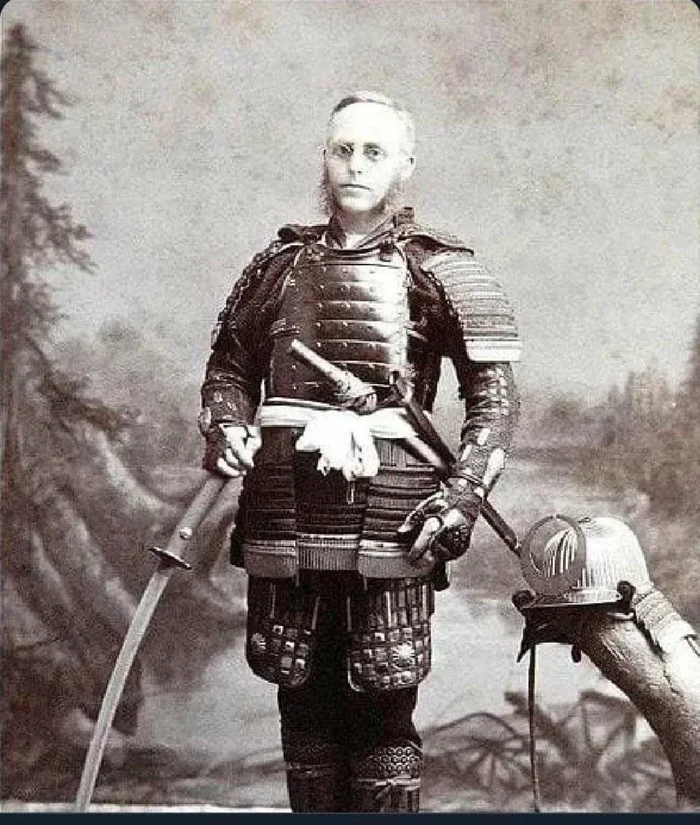 12. Западный турист, который заплатил за то, чтобы сфотографироваться в самурайских доспехах (1890 г.). Первый виабу в истории.