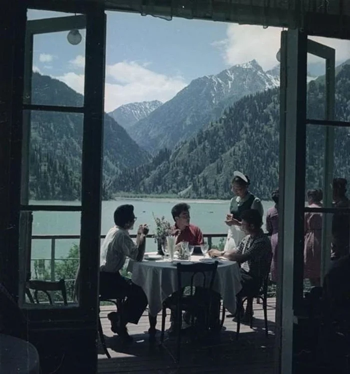 На ресторанном балконе. Озеро Иссык. 1961 год.