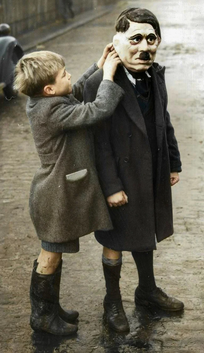 Дети примеряют маску Адольфа Гитлера. Лондон, 1938 год.