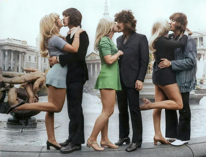 Трафальгарская площадь в Лондоне, 1967 год. Сейчас мода 60-х выглядит весьма забавно.