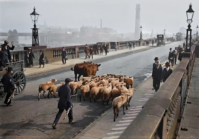На этом снимке пастух пересекает мост Ватерлоо со своими овцами, 1924 год.