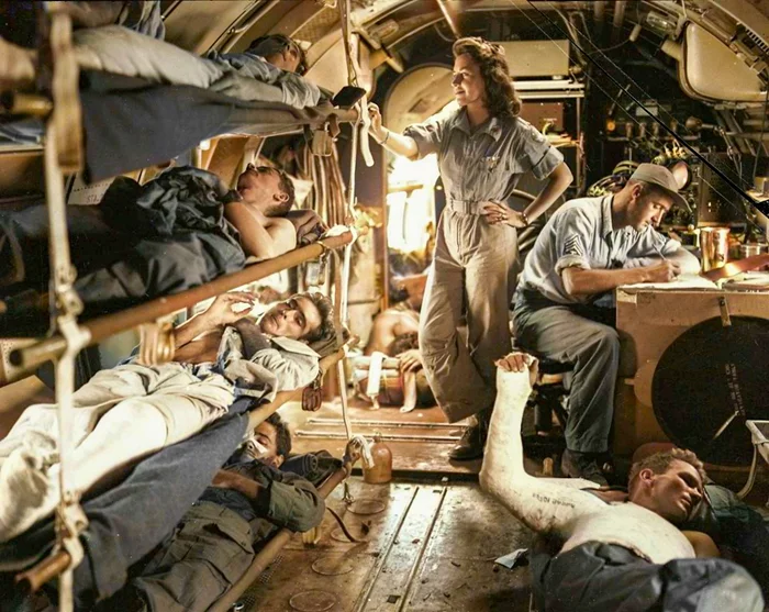 В американском санитарном самолете С-46; Манила (Филиппины), 1945 год.