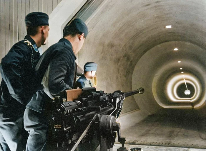 Немцы построили тоннель для испытания не только конкретного зенитного орудия, ещё для тестирования авиационного оборудования. Его длина была 400 метров.