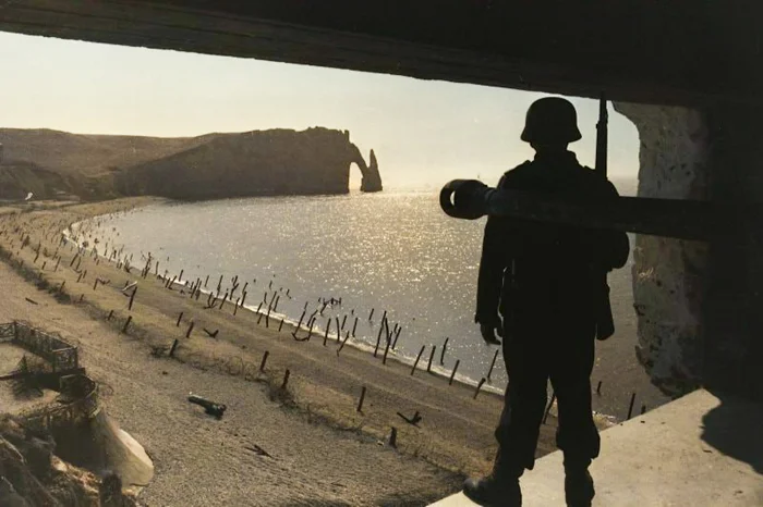Немецкий часовой в ДОТе, установленном на северном побережье Франции в городе Этрета. 1944 год.