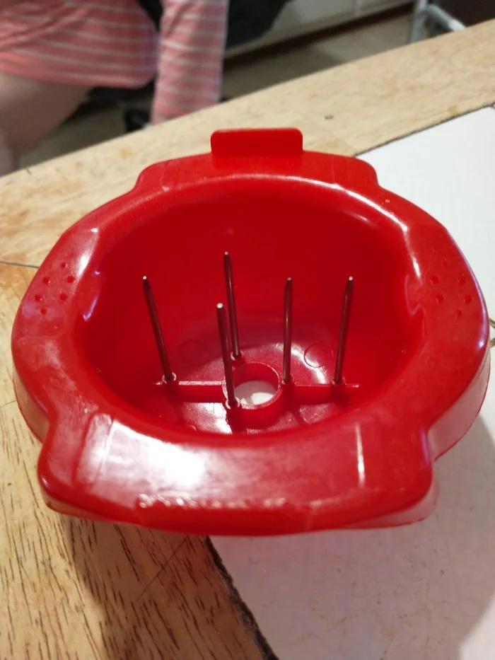 13. Я нашла это во время уборки на кухне. Если нажать, из отверстия выдвигается маленький шип. Что это такое?