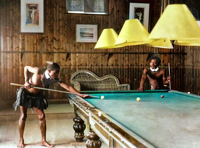 Зулусы учатся играть в бильярд. Южная Африка, 1903 год.