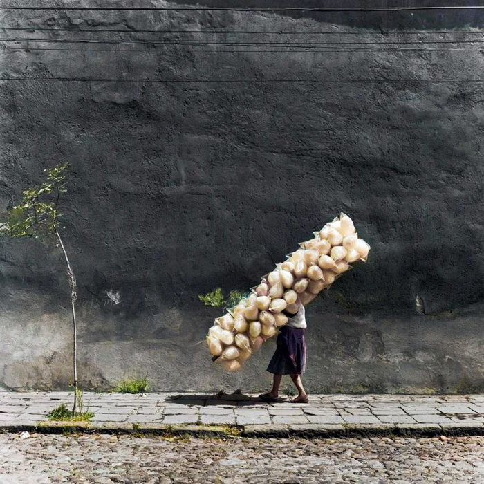 Продавец сахарной ваты идет на работу. Мексика, 1981 год.