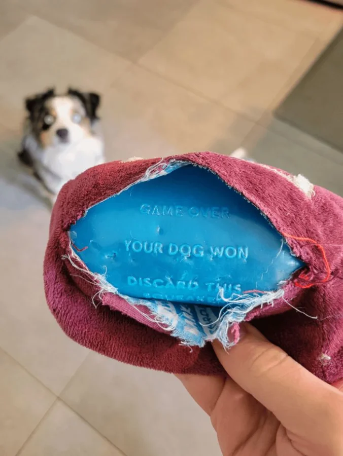 В собачьей игрушке была забавная надпись: «Игра окончена, твоя собака победила, выброси игрушку».