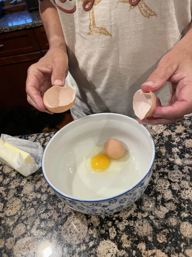 Курица моих родственников удивила всех, снеся яйцо с ещё одним яйцом внутри.