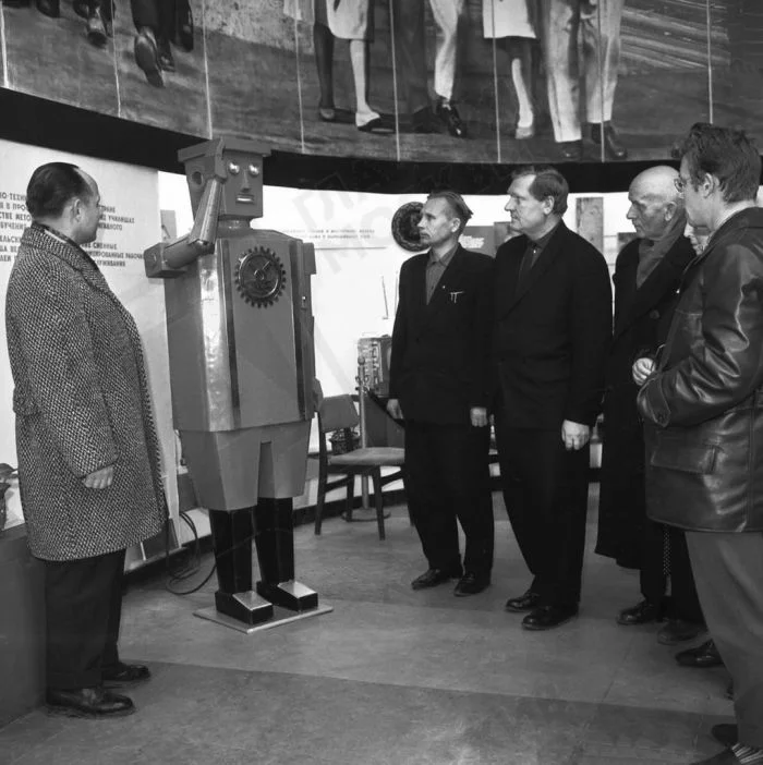 Этот механический экскурсовод предназначался для проведения презентаций на выставке ВДНХ.