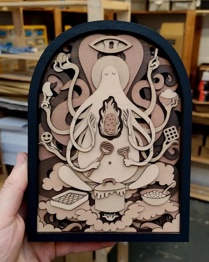 2. Фигура деревянного кота с орнаментами майя, навеянными культурой моей родины.