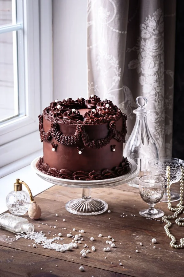 5. Барбора Баретик — торт с жемчужной отделкой и шоколадной помадкой.