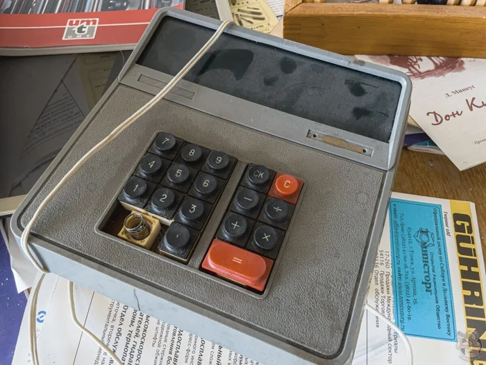 Интересный контраст в бухгалтериях: рядом с современными на тот момент калькуляторами неизменно находились деревянные счёты. Что это — надёжность или привычка? Такие сцены часто встречаются на предприятиях, закрытых в 90-е и начале 2000-х годов.