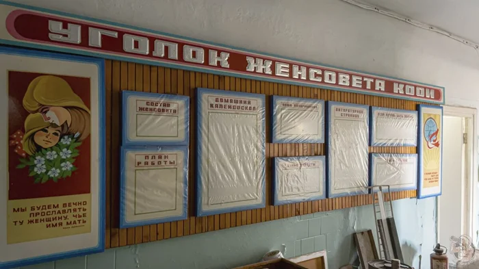 В очередной раз удивил уголок женсовета с пустыми стендами, которые, кажется, не использовались даже в советское время. Видимо, такие уголки не пользовались популярностью, раз они практически не встречаются на других объектах.