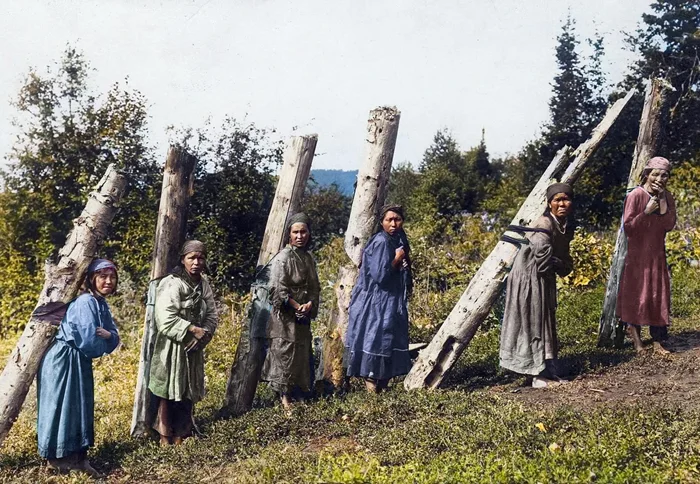 Женщины на заготовке дров. Алтай, Горная Шория, 1913 год.