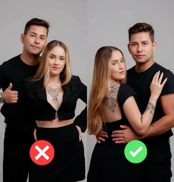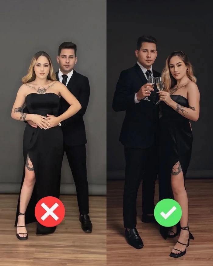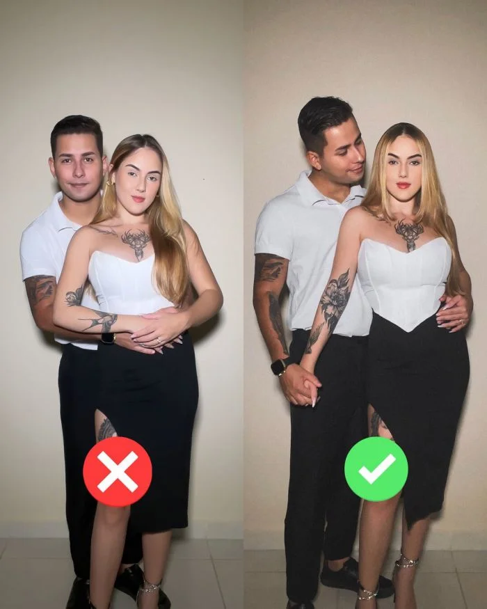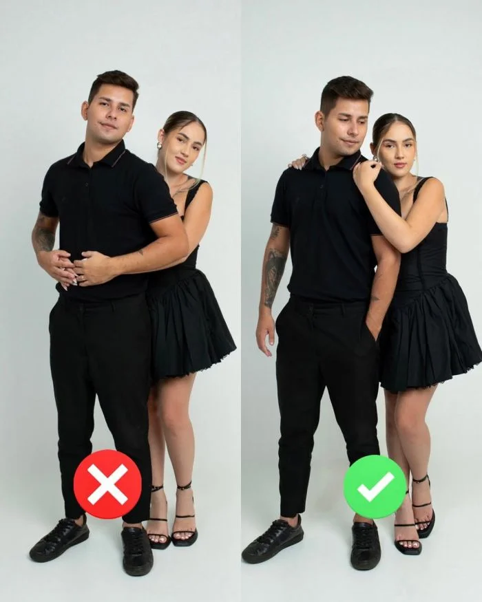 Впереди корпоративы и Новый год, а это значит, что предстоит сделать немало фотографий. Не обязательно для этого устраивать фотосессии в студии, ведь сделать классный кадры можно везде. Для этого нужно лишь хорошее настроение и правильные позы. Пара испаноговорящих блогеров как раз подбирают хорошие позы для парных снимков. Они показывают, как лучше вставать вдвоём, чтобы на кадрах всё выглядело гармонично.