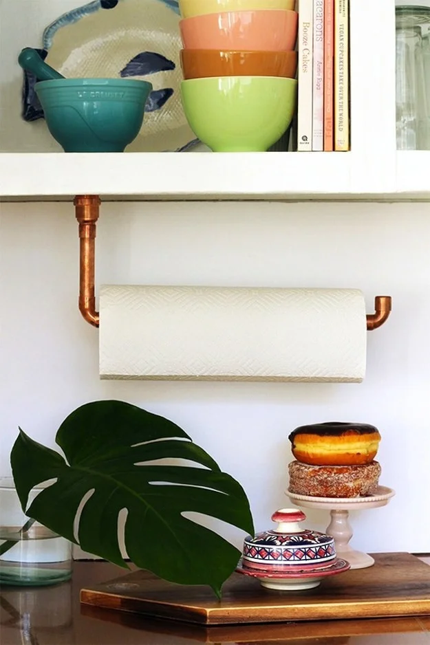 2. А дешевая медная труба может стать изящным держателем для полотенец.