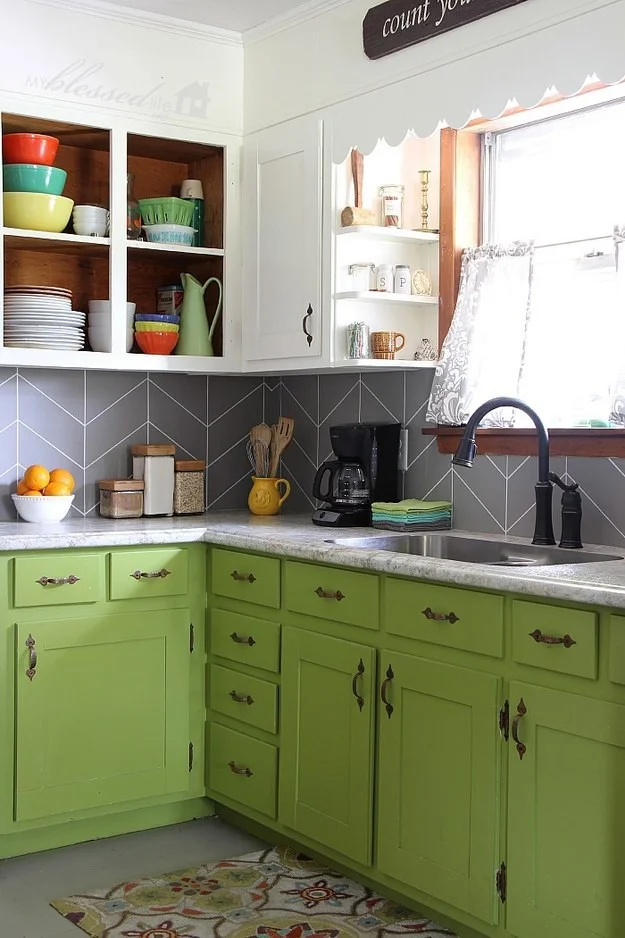6. Также можно использовать самоклеющуюся пленку для мебели. Мраморный узор, например, определенно придаст кухне более дорогой вид.