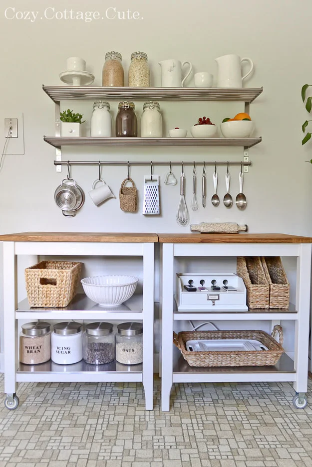 8. Если не хватает поверхностей для готовки – соедините две кухонные тележки.