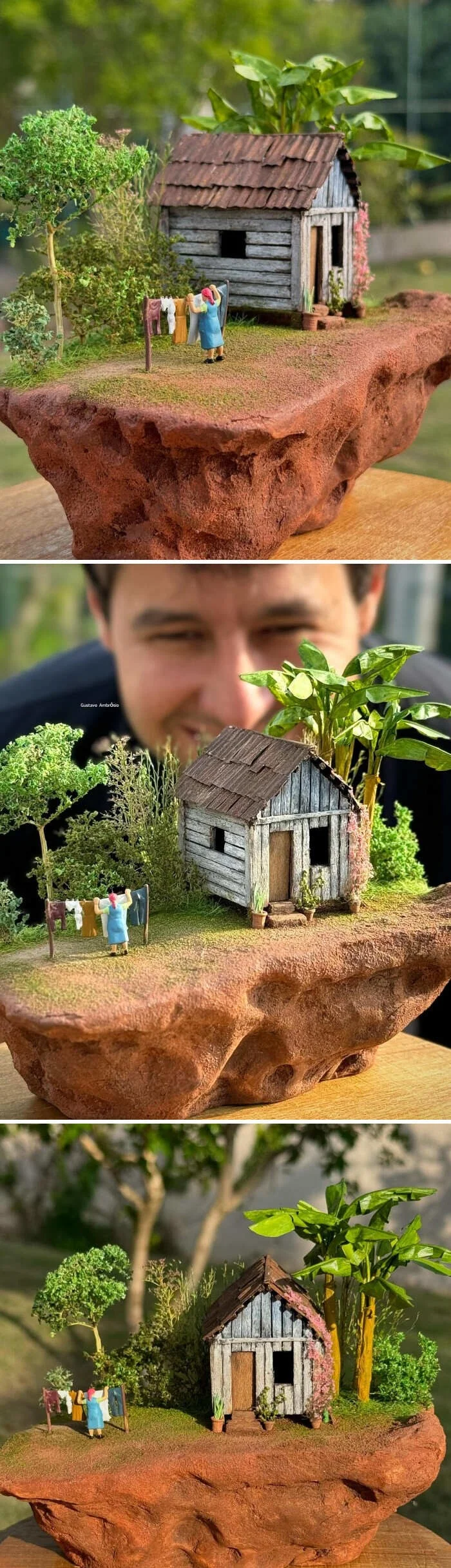 Бразильский художник Густаво Амбросио создает миниатюрные реалистичные дома и пейзажи, которые очаровывают миллионы людей. Его "мини - миры" открывают красоту и самобытность деревенских домов. Каждая миниатюрная деталь тщательно продумана, и выполнена с непревзойдённым мастерством. Взгляните на эти шедевры.