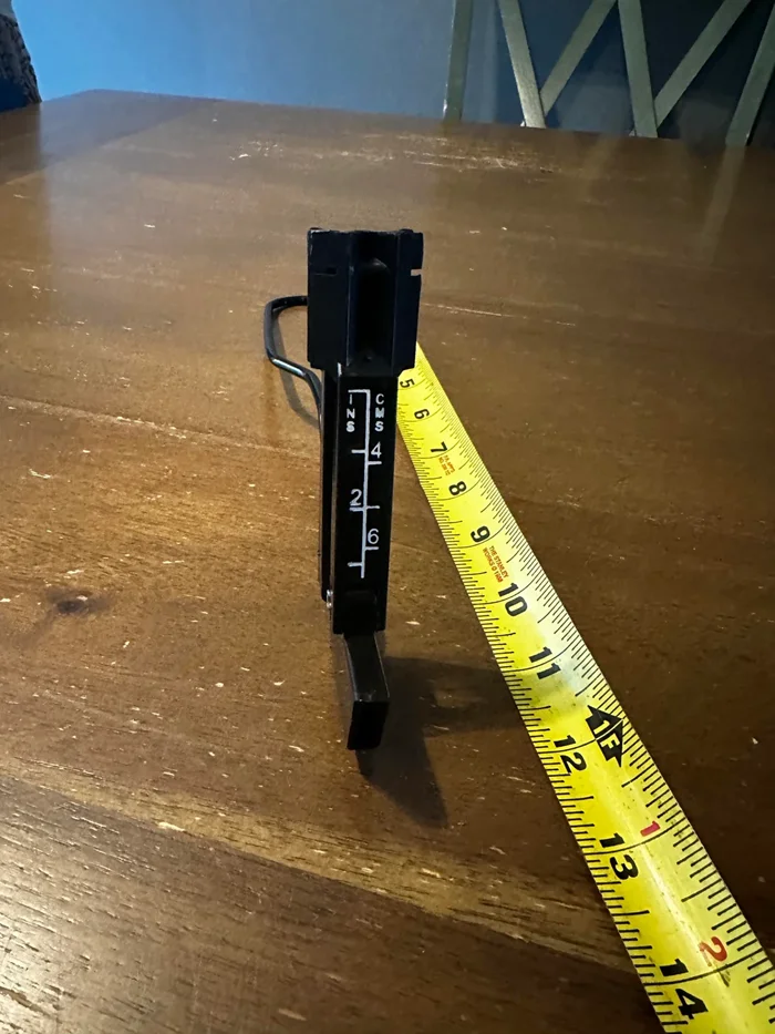 Это штука для отметки нижнего края платья или штанов на манекене для одежды. Выбрали нужную высоту - проткнули булавкой. Потом, когда все напротыкали - можно обрезать.