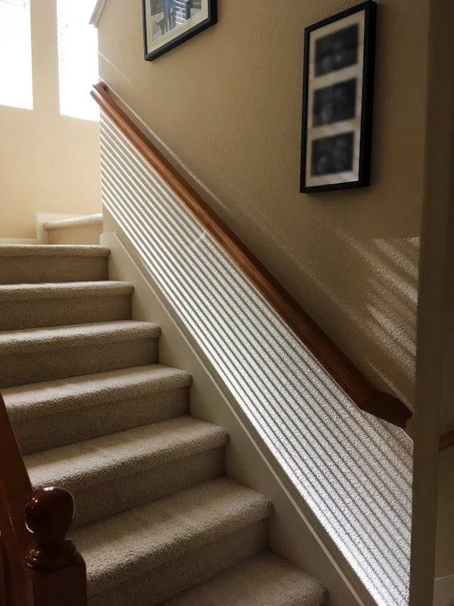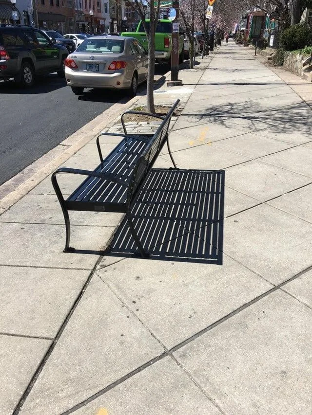 «Через жалюзи свет падает под перила под тем же наклоном»