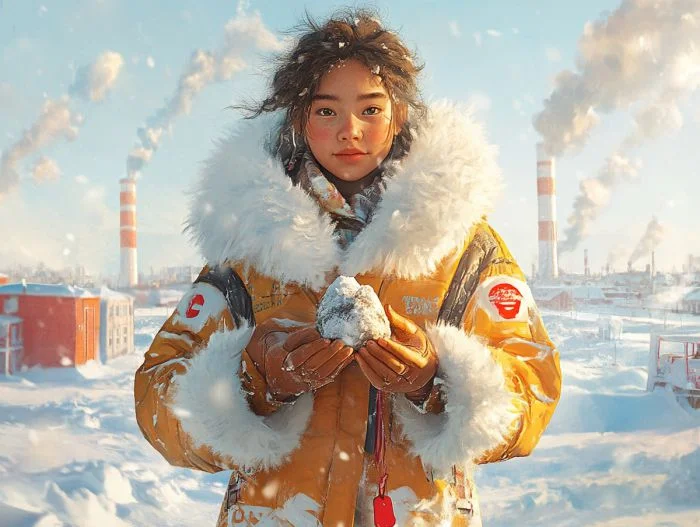Северный город в условиях вечной мерзлоты. Заброшенные шахты и суровый климат напоминают о прошлом, но люди здесь сохраняют стойкость и силу духа.