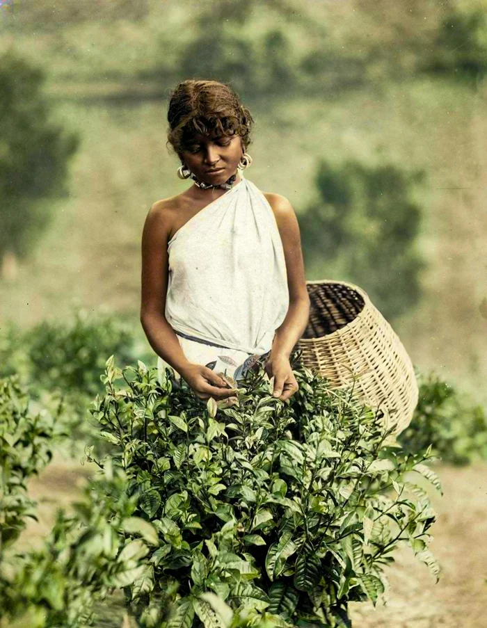 Девушка собирает листья чая. Шри-Ланка, 1880-е годы.