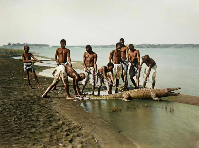 Охота на крокодила. Египет, 1870-е годы.