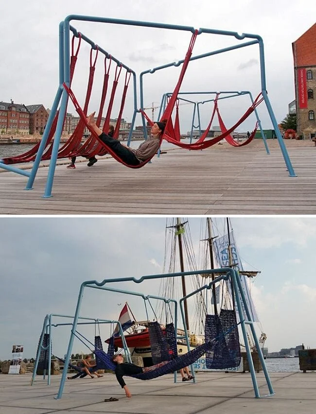 5. Скамейка-рогатка — оригинальное решение для отдыха.