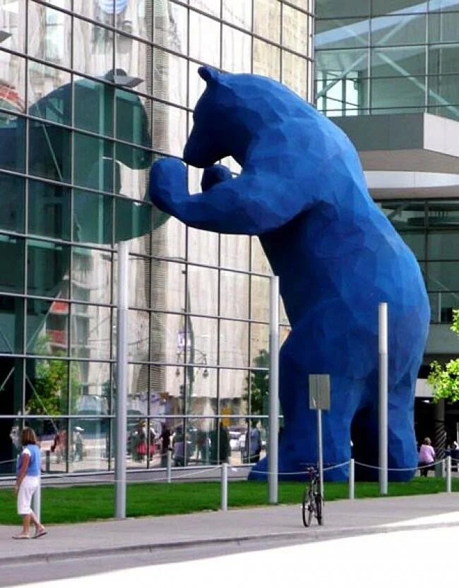 15. Медведь, заглядывающий в окна — креативный акцент городской среды.