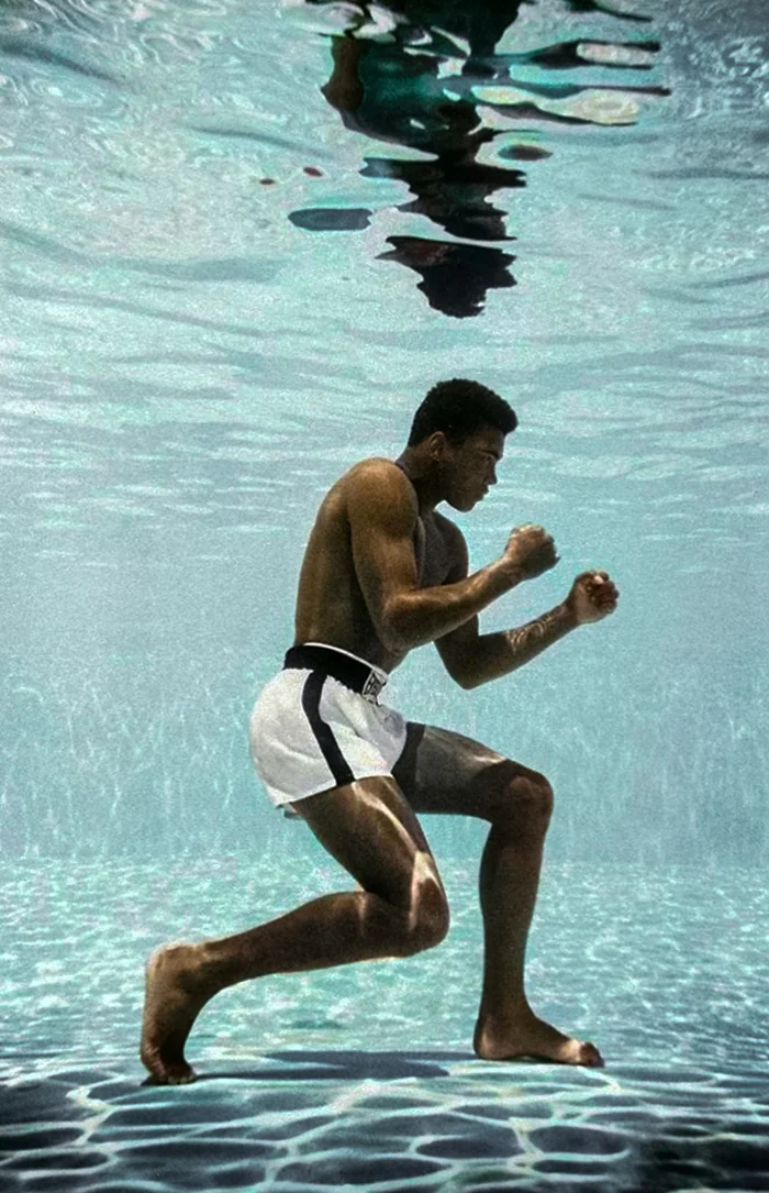 Естественно, что Мухаммед не тренировался под водой, это не более, чем байка к фото для поднятия популярности боксера.