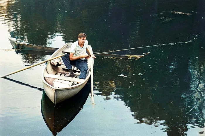 Советский футболист и вратарь Лев Яшин на рыбалке. СССР, 1960 год.
