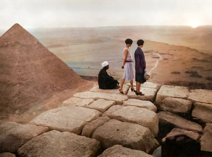 Туристы на пирамиде Хеопса. Египет, 1920-е годы.