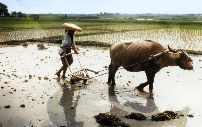 Карабао на рисовом поле, Филиппины, ок. 1917 года.