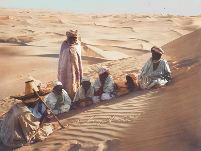 Дети обучаются грамоте. Песок Сахары в качестве классной доски. Тунис, 1914 год.