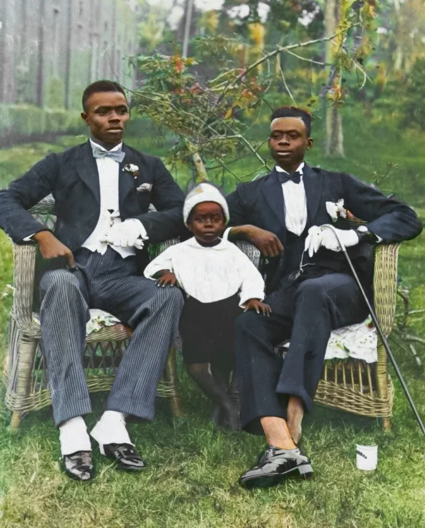 Три брата из богатой семьи позируют для фотопортрета. Гана, 1917 год.