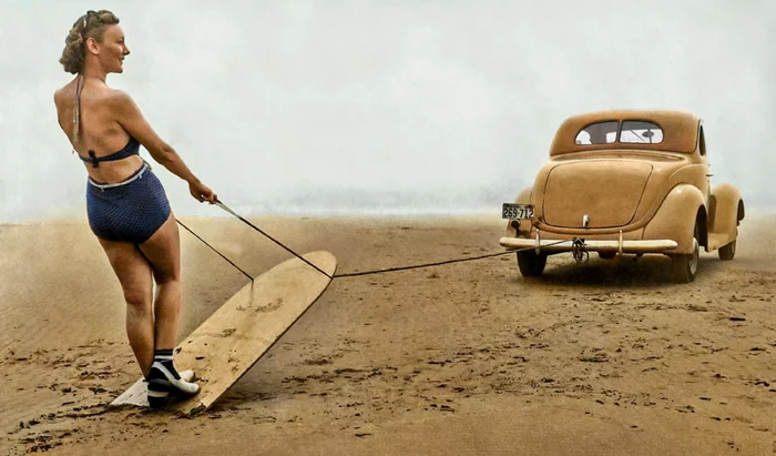 Песчаный серфинг на побережье Орегона в 1940 году.