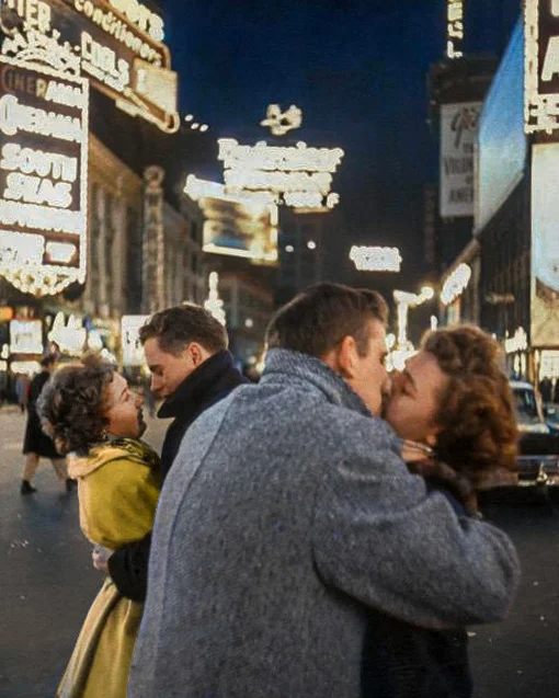 Традиция целоваться на Таймс-сквер появилась после фотографии Альфреда Эйзенштадта, на которой запечатлён американский моряк Гленн Макдаффи, целующий медсестру Эдит Шейн, одетую в белое платье, в день Победы над Японией (14 августа 1945 года).