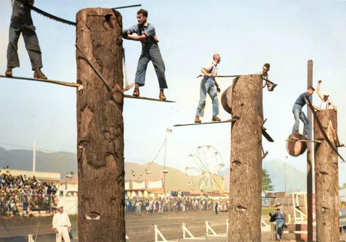 Чемпионат лесорубов в поселке Тилламук, штат Орегон, США, 1941 год.