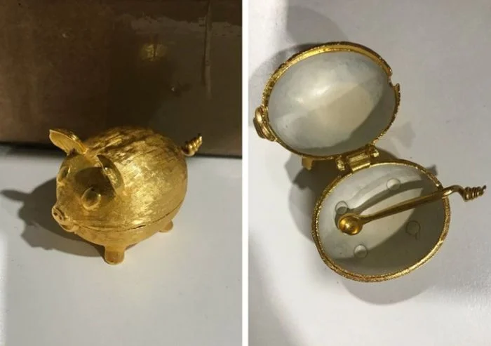 Старинная солонка. Ложечка для соли в роли поросячьего хвостика