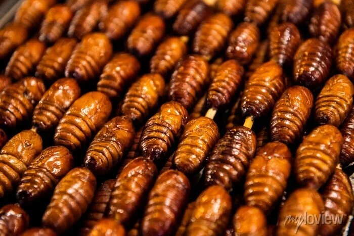В качестве полезного «перекуса» китайцы частенько отдавали предпочтение личинкам шелкопряда. После вскрытия куколок, обычно оставалось много гусениц, которых впоследствии и использовали для приготовления деликатеса.