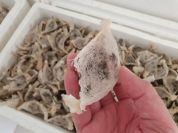 По мнению китайцев, вкус личинок шелкопряда очень похож на вкус устриц или крабов, и надо сказать, что личинки популярны в Китае и сегодня – консервированные или…в шоколаде.