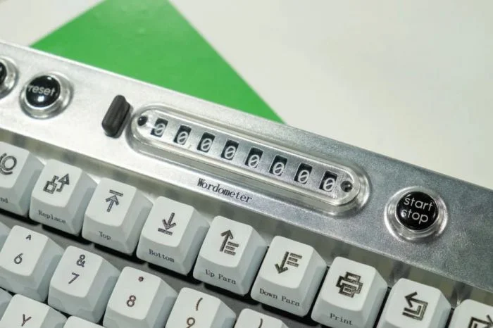 Одна из самых интересных деталей – два механических счетчика на верхней панели. Первый работает как таймер для отслеживания сессий письма, а второй – восьмизначный "одометр слов", который подсчитывает написанное. Счетчик можно обнулить или приостановить, если вы не хотите учитывать сообщения в мессенджерах или электронные письма.