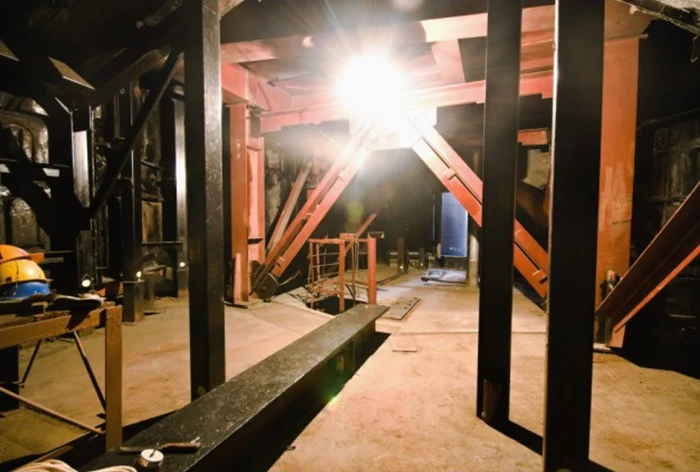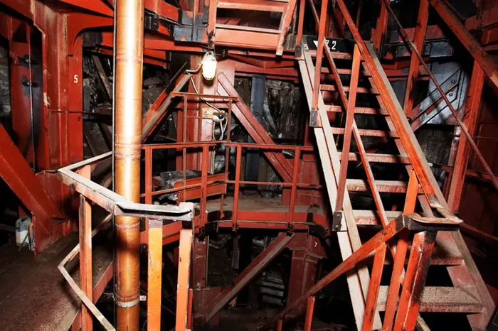 Интересного в ней мало. Это просто некая полость со здоровенными металлическими штырями и опорными балками.