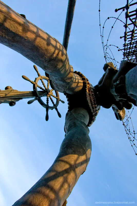 Кстати, именно она держит скульптуру Петра Алексеевича, а не 8 опор. По сути статуя просто стоит на своих двоих, опёршись об мачту.