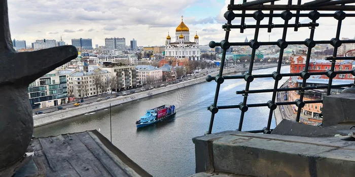 А ещё лучше просто полюбоваться видами снизу. Под нами Москва-река, Храм Христа Спасителя и прочие достопримечательности Первопрестольной.