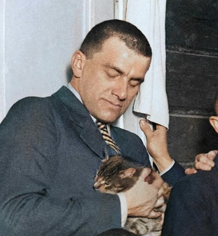 Милая фотография с пушистым другом была сделана на квартире в Сокольниках, после возвращения В.В. Маяковского из поездки в США. Это маленькая часть групповой фотографии, которая в своё время облетела интернет. Полную фотографию выложу в комментариях.