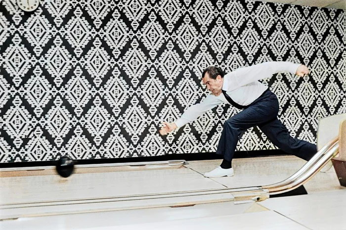 Президент Ричард Никсон играет в боулинг в Белом доме. Возможно было не лучшее время для фотосессии, у него воина во Вьетнаме, протест афроамериканцев, а он время нашел поиграть.